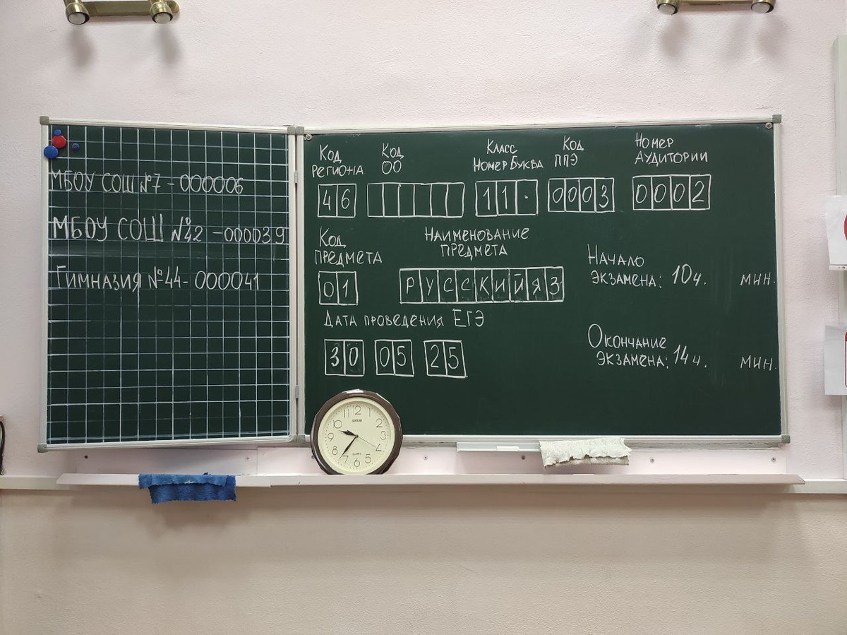 Курские школьники сдают ЕГЭ по русскому языку Одним из пунктов проведения итогового экзамена является гимназия №4. В этом образовательном учреждении проверят свои знания 144 человека. Руководитель пункта на базе 4-й гимназии Юлия Стародубцева рассказала, что для проведения экзамена задействованы 10 аудиторий, каждая оборудована средствами видеонаблюдения, в коридорах расставлены средства подавления подвижной связи, при входе дети проходят через рамку металлоискателя, чтобы исключить нарушения порядка проведения экзамена. В связи со сложившейся обстановкой в регионе окна в здании оклеены бронепленкой, укреплены мешками с песком. За ходом экзамена следят общественные наблюдатели, как правило, ими становятся родители выпускников следующего года. Школьники, которые не согласятся с выставленными баллами, смогут подать апелляцию. Фото: Татьяна Мишина.