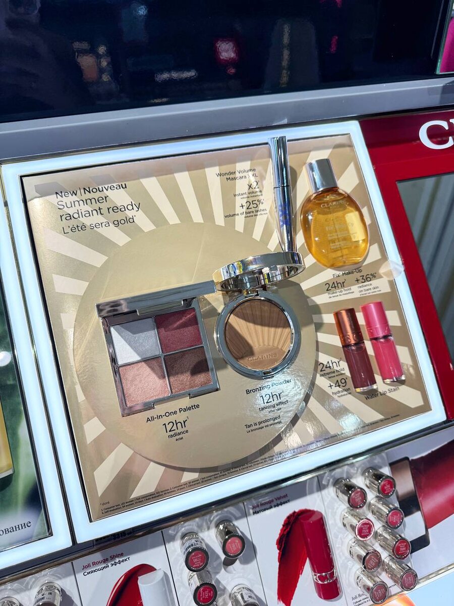 Поймала в Рив Гош в наличии новую летнюю коллекцию Clarins и с первого взгляда влюбилась в палетку для лица