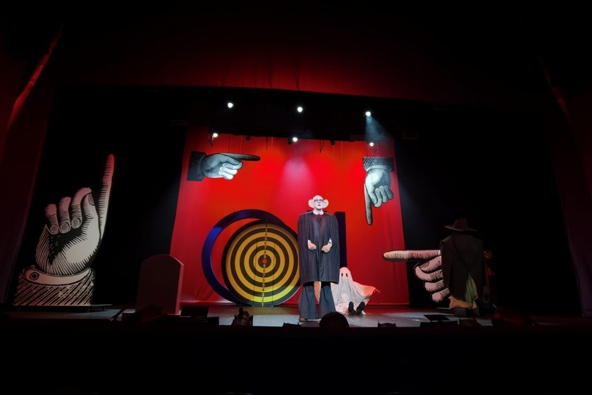 Сегодня в театре кукол состоится премьера спектакля, который поставила на екатеринбургской сцене команда из Санкт-Петербурга во главе с режиссером Алексеем Егоровым. Это история не только про взаимоотношения детей и учителей, здесь затронуты общечеловеческие ценности. 37 лет работы в школе, выход на пенсию. Чему себя посвятить? Отомстить ученикам, которые издевались над тобой? Или простить их? «Я бы хотел, чтоб зрители увидели человека, над которым издеваются, что он переживает, что он чувствует», - говорит Алексей Егоров. Это очень умело рассказанная и сыгранная история, в главных ролях которой заслуженная артистка РФ Алла Антипова (мама главного героя) и Валерий Полянсков (главный герой), который надеется, что на премьеру придёт его педагог Холмогорова Надежда Гавриловна. Хочется отметить работу художника-постановщика Лёши Силаева - костюмы и декорации великолепны. Инспектор с головой акулы, учитель французского языка с гипертрофированным бюстом, гигантский халат главного героя и мно