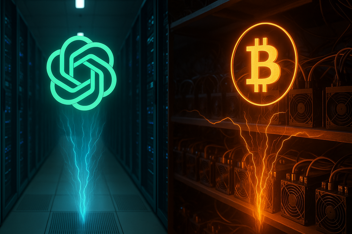 До недавнего времени главным «энергопожирателем» считался биткойн‑майнинг: сеть тратит 15–18 ГВт, чтобы поддерживать добычу новых блоков. Но после перехода Ethereum на Proof‑of‑Stake криптовалютный спрос замер. Зато мета‑Вселенная больших языковых моделей растёт в геометрической прогрессии. Обучение GPT‑4 заняло порядка 25 мегаватт‑часов, но это разовая операция; куда больше ресурсов уходит на ежедневный инференс — каждый запрос к чат‑боту, генерация изображения или перевод текста. С увеличением числа пользователей нагрузка растёт быстрее, чем успевают улучшаться алгоритмы.