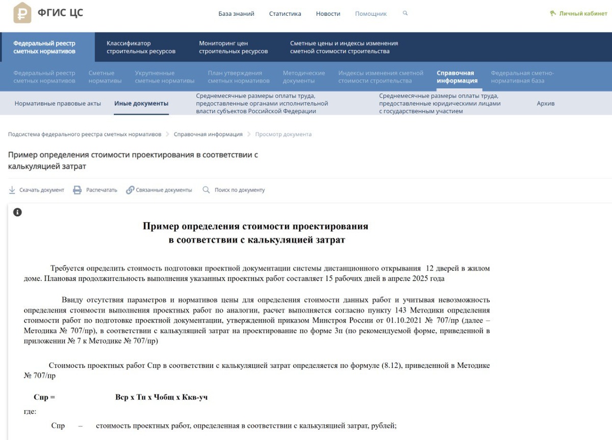🔔Добрый день коллеги! Сегодня на ФГИС ЦС размещены примеры расчета стоимости проектных работ 1. Пример определения стоимости проектирования в соответствии с калькуляцией затрат» https://fgiscs.minstroyrf.ru/frsn/reference/letters/59747d94-f106-4d03-93b9-971cdf50a4bf