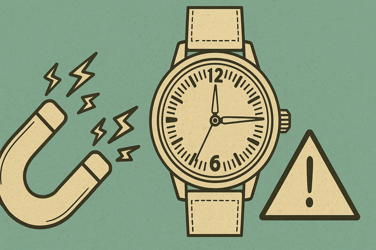 Дело в том, что ключевые детали часового механизма сделаны из металлов, которые могут намагничиваться. Особенно уязвима тонкая спиральная пружинка — та, что заставляет часы тикать равномерно (балансовая пружина). Если эта пружина намагнитится, её витки начинают притягиваться друг к другу. В результате ход сбивается: часы либо серьёзно спешат, либо заметно отстают, а могут и вовсе начать идти скачкообразно. Проще говоря, магнитное поле сбивает точность хода часов.