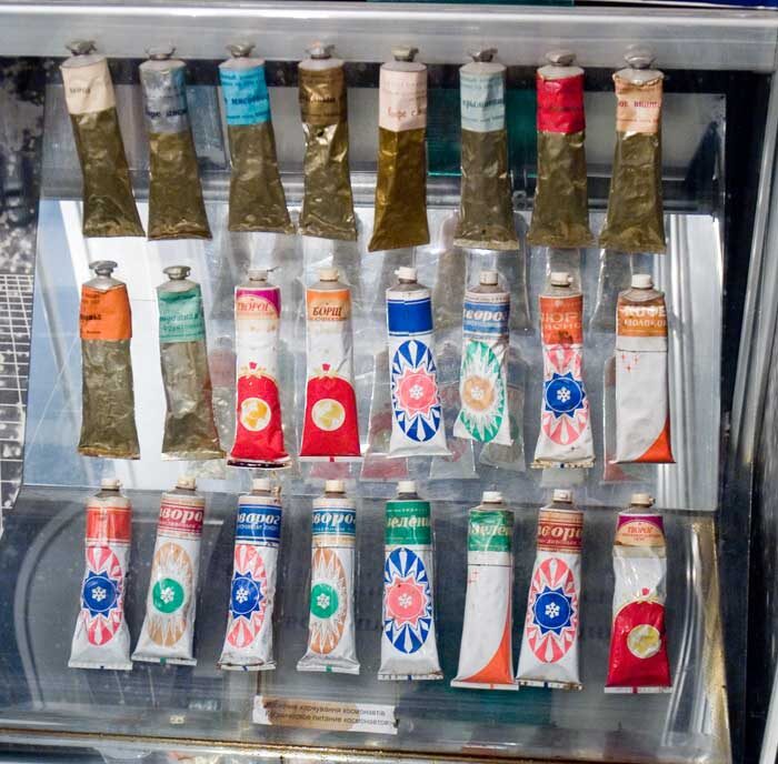 Можно заметить, что и на Земле тюбики для зубной пасты, лекарственных мазей и для детского питания тоже часто применяются. Еще популярность приобрели клеи в тюбиках. В космосе тоже некоторое время использовались герметики и клеевые массы для ремонта в такой упаковке, но почти сразу их вытеснили распылители, которые в безвоздушном пространстве прекрасно работали.