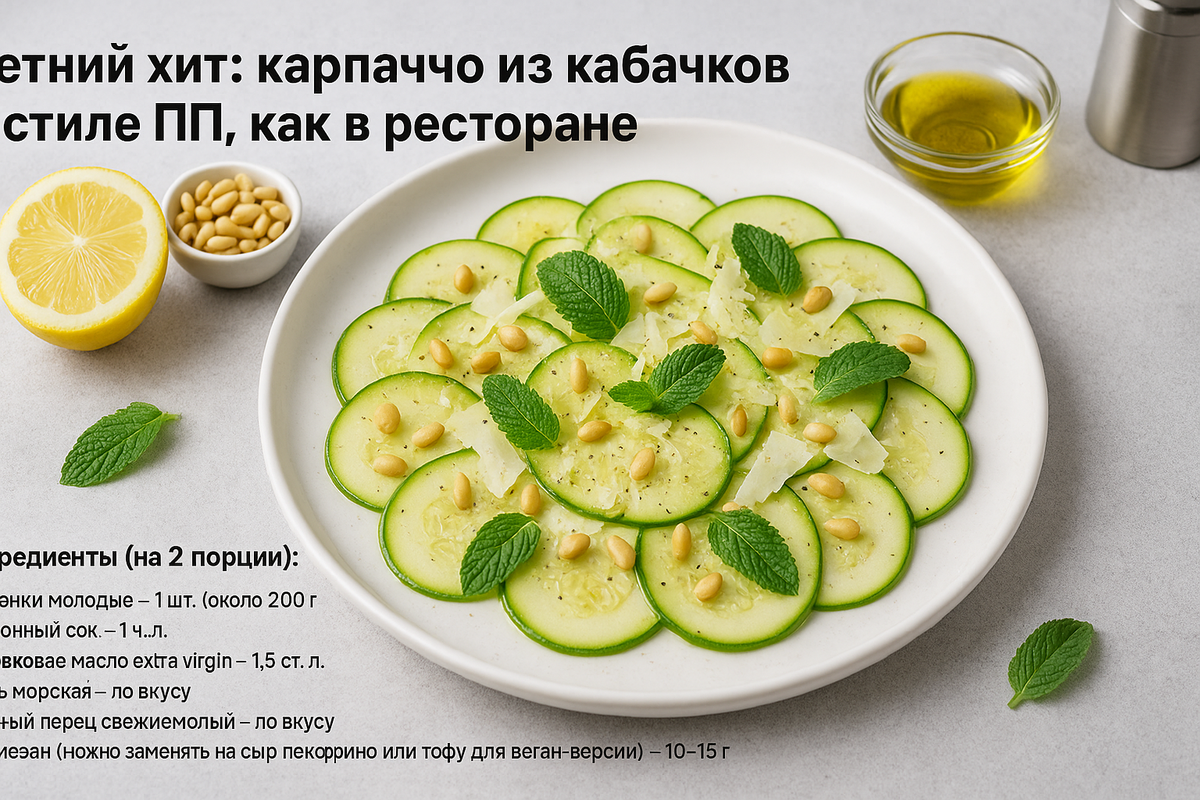 Иногда самые простые овощи раскрываются с неожиданной стороны, если подойти к ним с фантазией. Кабачки — летний продукт, привычный и доступный. Но стоит нарезать их тончайшими лепестками, добавить капельку кислоты, немного текстуры и масла, — и вы получаете блюдо, достойное подачи в модном ресторане. Карпаччо из кабачков — это не пародия на классическое мясное блюдо, а отдельная гастрономическая история. Его подают в лучших вегетарианских ресторанах, используют как лёгкую закуску в меню правильного питания. Оно не требует термообработки, готовится за 10 минут и отлично сочетается с рыбой, сыром или остаётся самостоятельным блюдом. Ингредиенты (на 2 порции): Как приготовить: Советы от шефа: Карпаччо из кабачков — это способ увидеть овощи по-новому. Никакой скуки, только игра вкусов и текстур. Попробуйте — и расскажите, как получилось. Подписывайтесь, готовьте с удовольствием и наслаждайтесь вкусом!