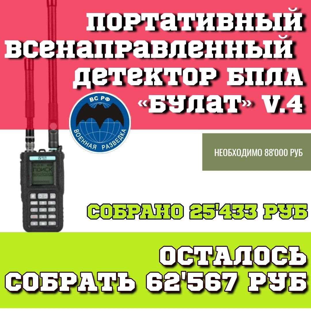 Друзья, продолжаем сбор на детектор БПЛА "Булат". Хотим обратить ваше внимание, что время изготовления "Булата"+ доставка в среднем займут 2 месяца. Наша задача-как можно скорее собрать нужную сумму и внести 100% предоплату, чтобы начали его собирать. Итак, продолжаем сбор на ✅ Детектор БПЛА "БУЛАТ" - 1 шт. 📌Сумма к сбору - 88'000 руб. 🔺Собрано - 25'433 руб. 🔺Осталось собрать - 62'567 руб. Поддержите, пожалуйста, сбор, друзья! Детектор «Булат» предназначен для обнаружения и идентификации «самых популярных» моделей БПЛА. "БУЛАТ" - это спасенные жизни наших бойцов. 🙏 Любую посильную сумму можно перевести на номер карты 💳2202208188194204 или по номеру телефона 📞+79530562233 Получатель - Светлана Владимировна Л. (Сбербанк) #уралсвоихнебросает #вместемысила #работаембратья #победабудетзанами #УралСвоихНеБросает #уУралаНеСвоихНет