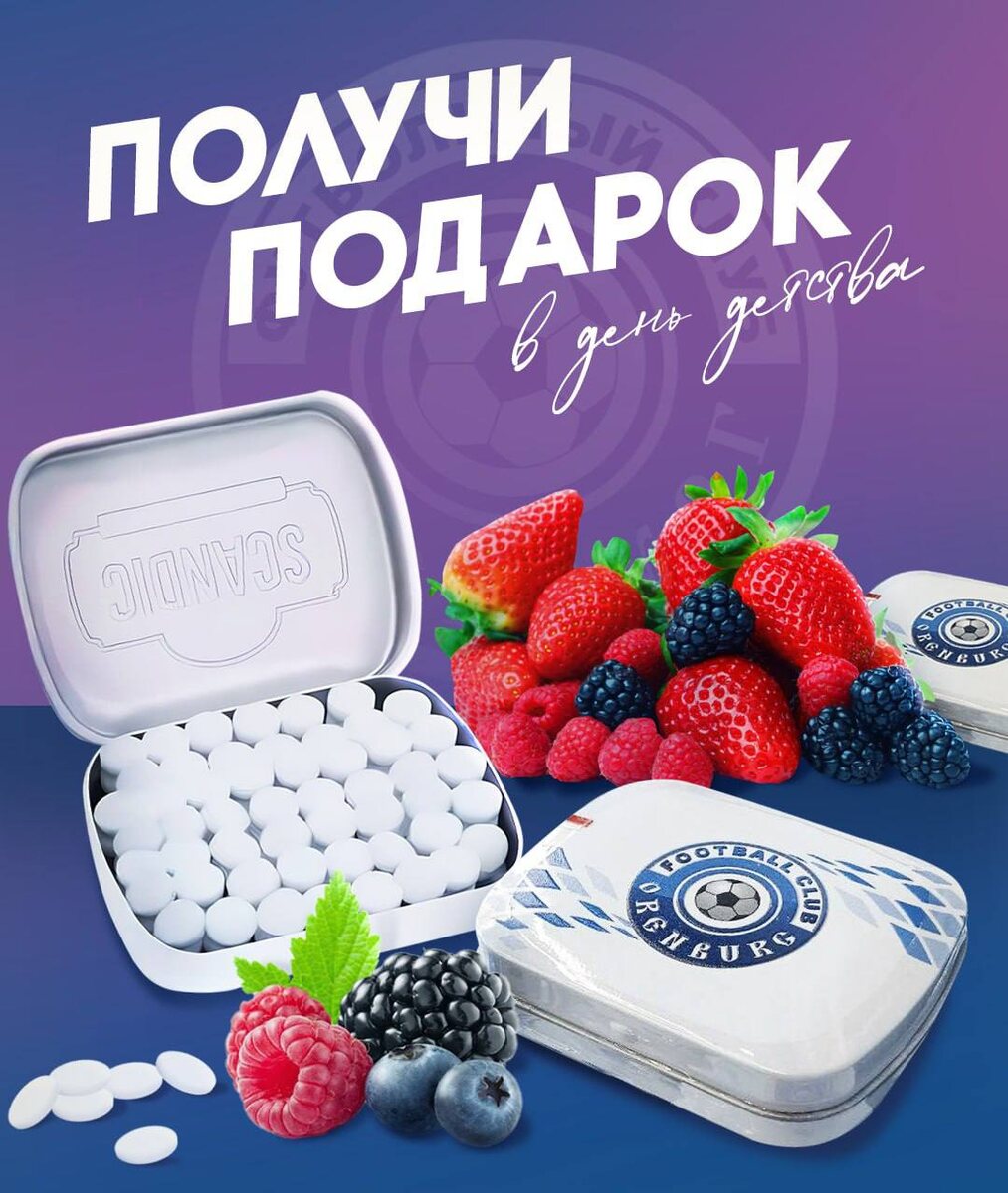 Получи сладкий подарок в день детства! 🍬 Наш фаншоп приготовил праздничное предложение: За каждые 750 рублей в чеке каждый юный покупатель магазина получает в подарок конфеты Scandic со вкусом лесных ягод. Подарок выполнен в специальном стильном футляре с эмблемой ФК «Оренбург», а сами конфеты не содержат сахара! • Срок акции: с 30 мая по 2 июня включительно. • Количество подарков не ограничено. #ФКОренбург