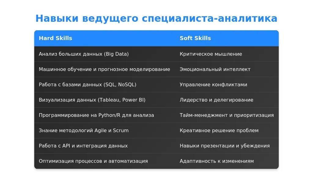 Анализ требований вакансии для профессии "ведущий специалист-аналитик"