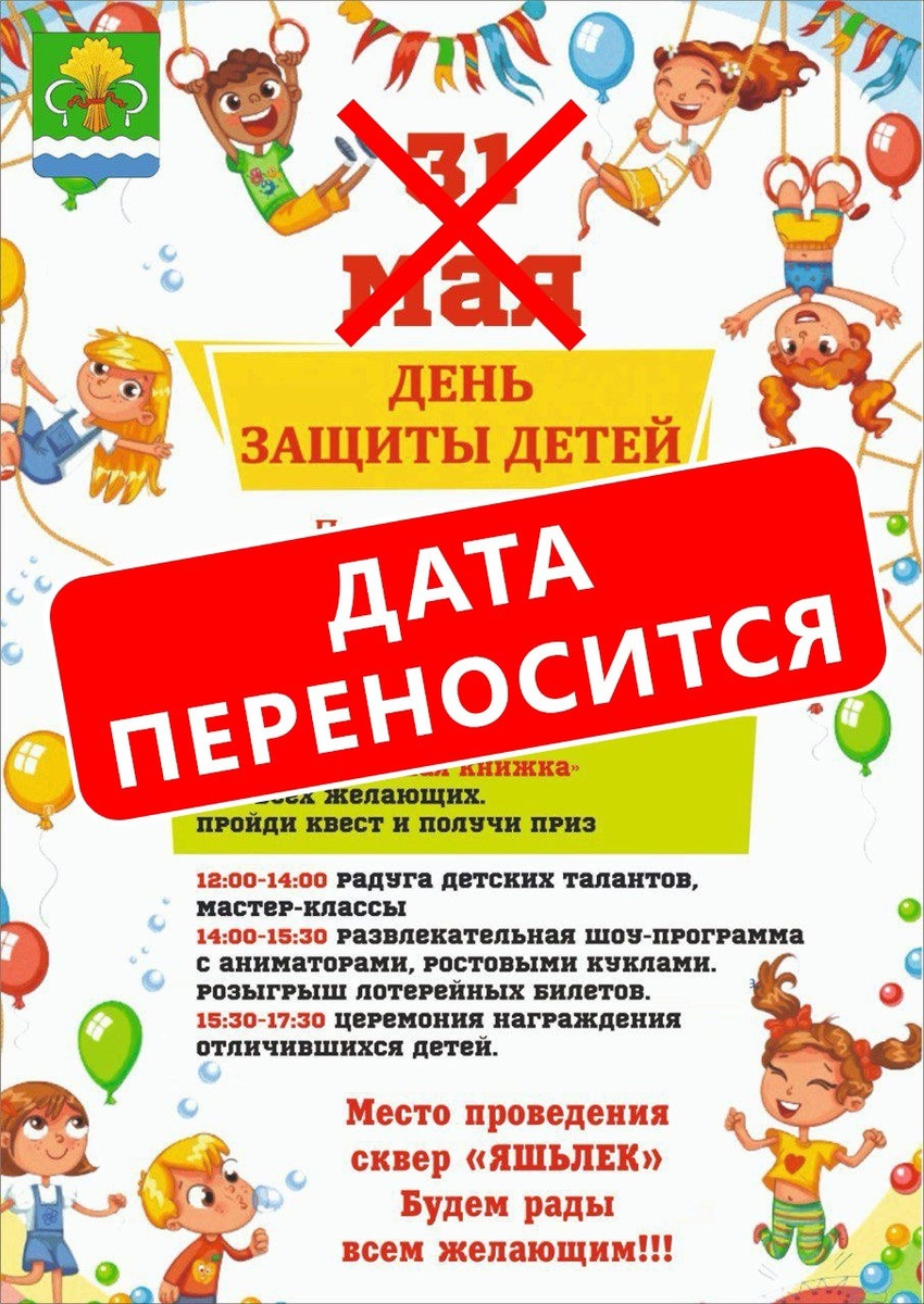 ☀️🌡 Внимание! Перенос мероприятия ☀️🌡 Уважаемые жители и гости! Мероприятие, посвящённое Дню защиты детей, переносится из-за аномально жаркой погоды. 31 мая из перечисленных в афише мероприятий в сквере «Яшьлек» будет организована только церемония награждения отличившихся детей. Для посетителей сквера будут работать торговые точки, зоны питания. Развлекательная программа от аниматоров, конкурсы, игры перенесены на 1 июня. Гала-концерт конкурса «Детских талантов» состоится 2 июня. Спасибо за понимание! ✅ ПОДПИСАТЬСЯ l ПРИСЛАТЬ НОВОСТЬ