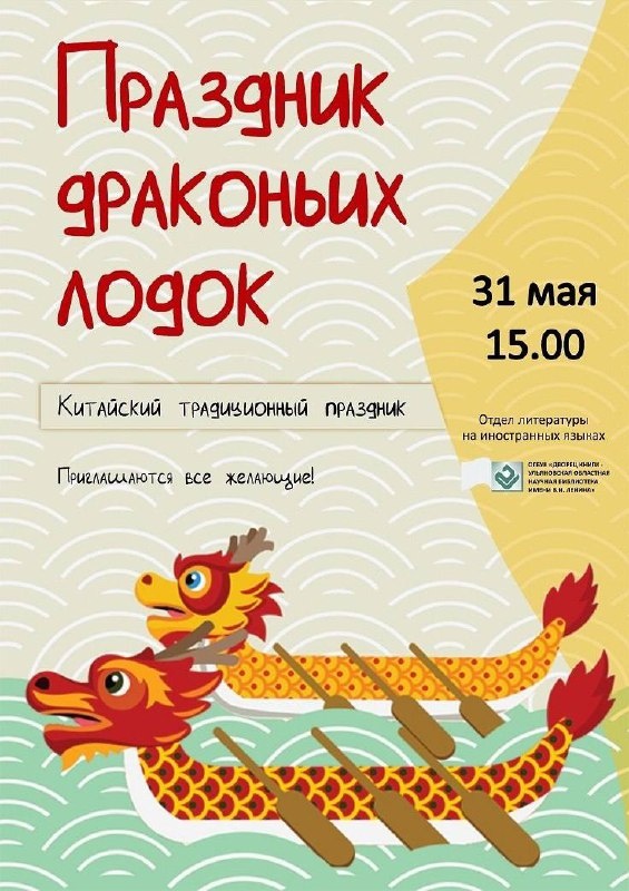 Праздник драконьих лодок 🇨🇳 🗓️ 31 мая в 15.00 📍 Дворец книги Вас ждёт лекция, посвящённая празднику драконьих лодок. Ведущая Дарья Кубарева расскажет об истоках праздника, связанных с ним музыке и еде, о самих драконьих лодках и соревнованиях по гребле. Участники встречи не только погрузятся в культуру и историю Китая, но поучаствуют в небольшой, но захватывающей игре. Вход свободный 🏷️ #31мая25
