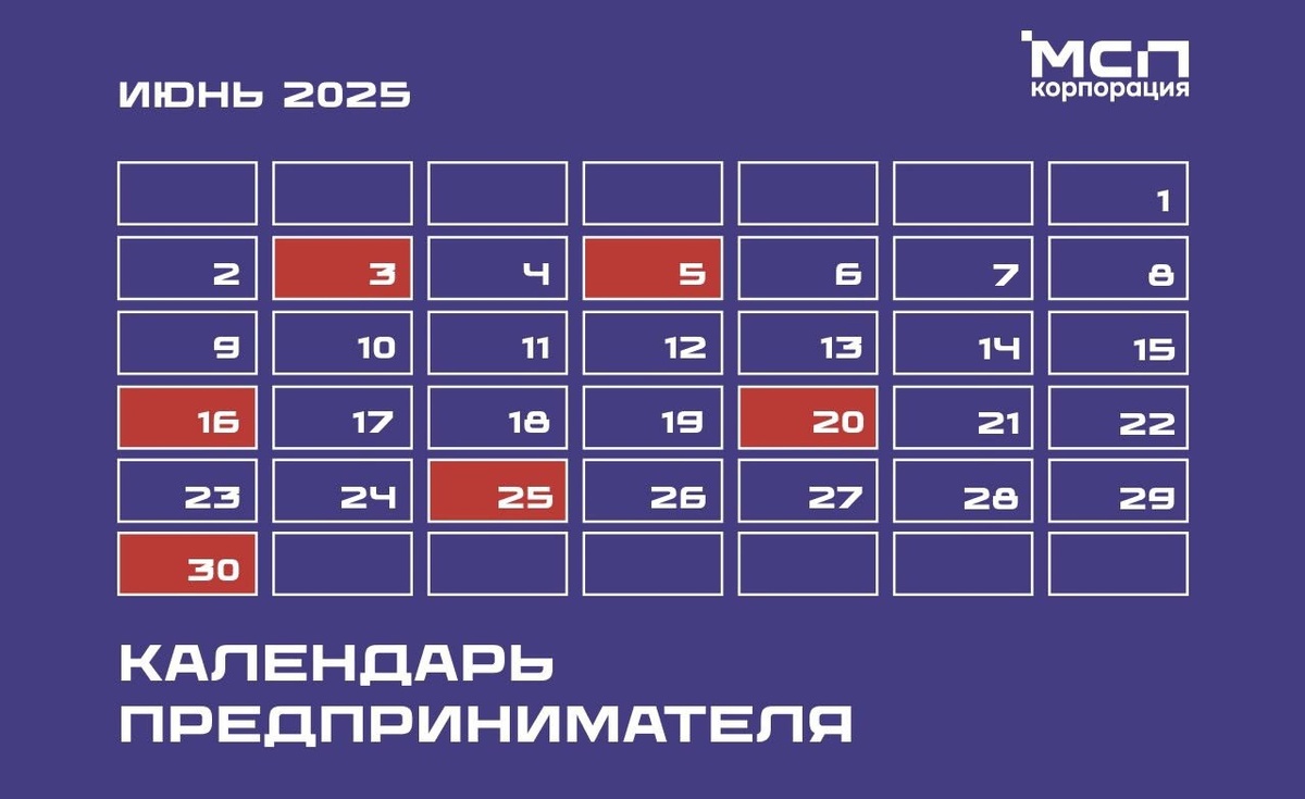 Календарь предпринимателя на июнь📅 Вот и лето пришло...😎 В июне большинству предприятий предстоят обычные платежи и отчеты. Календарь предпринимателя от Корпорации МСП поможет контролировать сроки уплаты налогов и подачи отчетности☝ Изучайте, делитесь с коллегами☺ Подробный календарь на нашем сайте 👉 https://mininvest.novreg.ru/medianews/news/83140/. #мининвест53