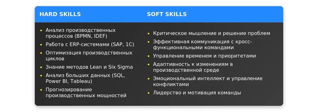 Критическое мышление: выявил и устранил узкие места в производственной цепочке, что повысило производительность на 10%.
