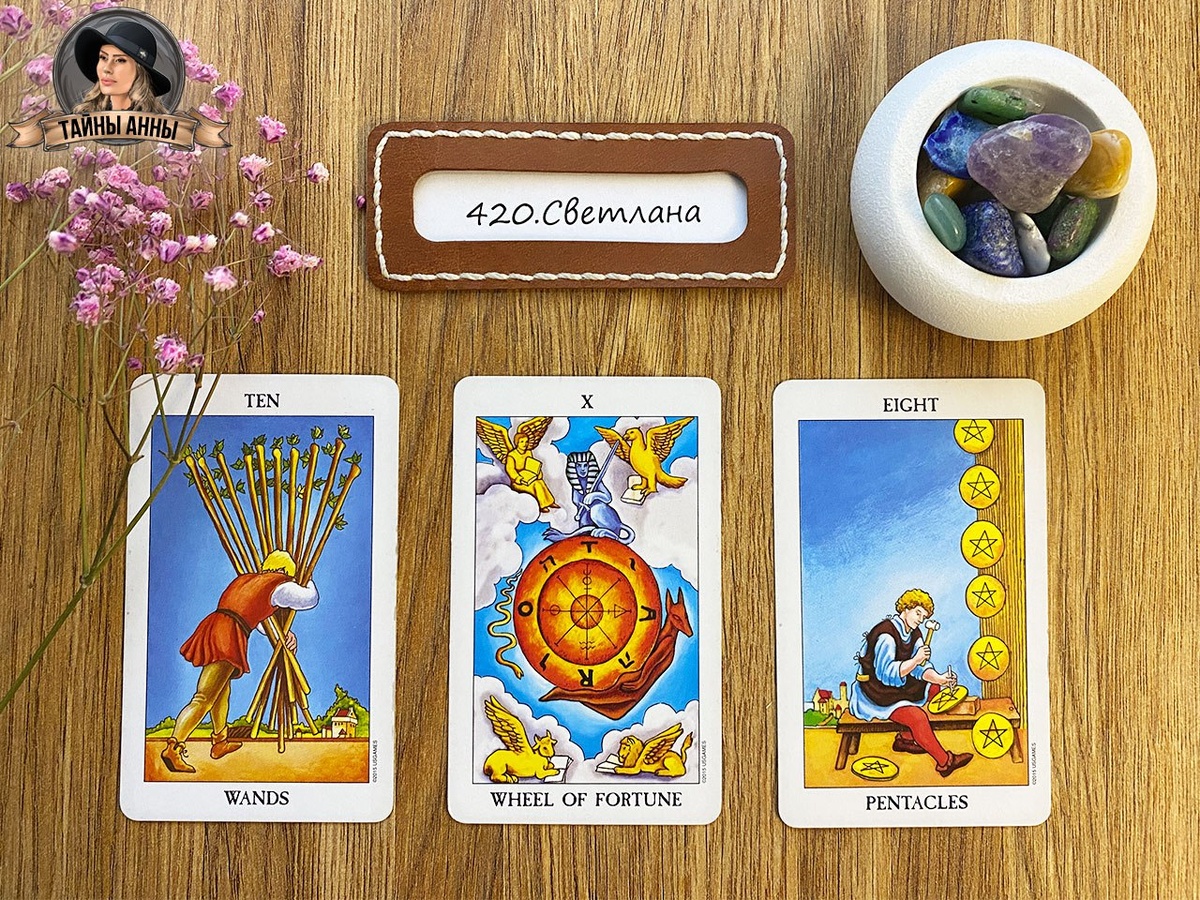 Расклад: У меня три вопроса... ❗️Один из недавних триплетов из канала с бесплатными раскладами... Редко делаю расклады на вопросы из разных сфер. Деньги и любовь - плохо сочетаются. Но тут вроде неплохо легло... Ситуация: 1. С мужем 19 лет в браке свекровь между нами всю жизнь, что только не пробовала ни чего не помогает. И вообще муж мой предавал меня, обижал, изменял. Все время с ним какие то качели то всё хорошо, то просто не выносимо. Может это не мой человек? Может оставить его в покое? Развестись? 2. Как мне стать самодостаточной, самоуверенной, женственной, любимой? Как самореализоваться? Через что? Куда смотреть? Во что идти? Есть желание пойти учиться в ВУЗ на психолога, но средств на это нет. 3. Откуда ко мне могут прийти большие деньги? Толкование расклада: ◈ Десятка Жезлов — отношения с мужем. Этот аркан символизирует тяжесть, непомерное бремя и истощение. Человек на карте несёт слишком много жезлов, которые буквально давят на него, мешают видеть путь впереди. Так и ваш