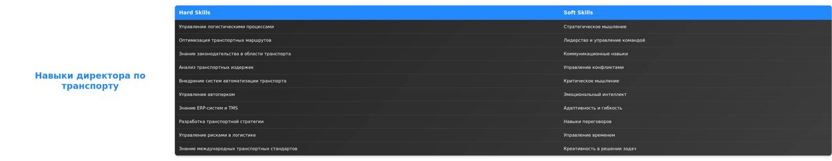 Начинающим директорам по транспорту важно сделать акцент на обучаемости и базовых навыках. Например: