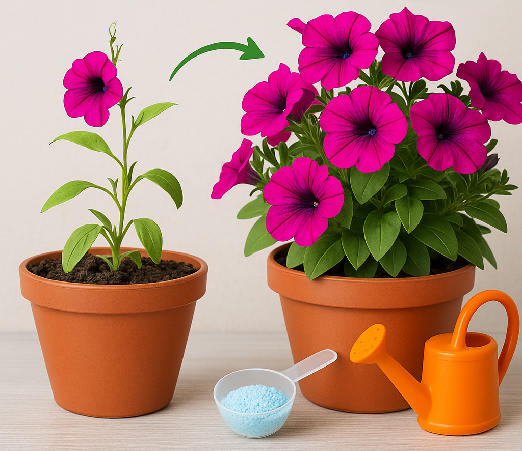 Там почва быстро истощается, и без подкормок через пару недель куст начинает «унывать»: Так что если хотите, чтобы петуния радовала до самой осени — без регулярного питания не обойтись. Сначала даём ей прижиться, а потом — подкормка на рост. Можно чаще, если петуния си