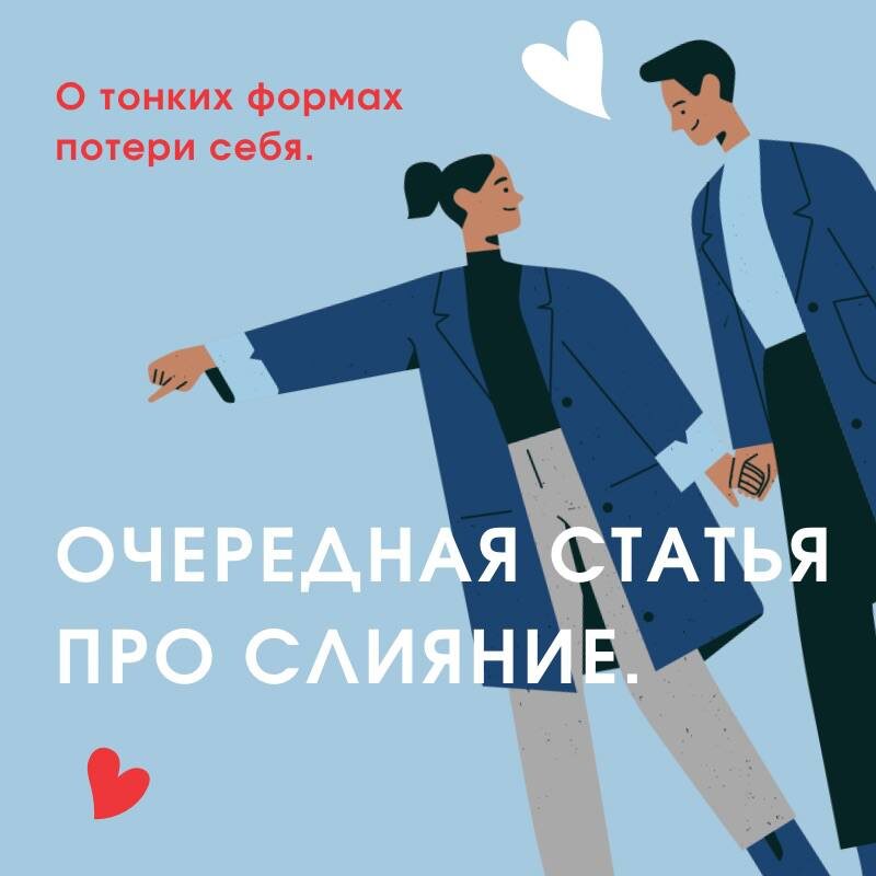 Сколько раз вы говорили или слышали: «Мы с ним — одно целое», «Мы всё делаем вместе», «Без неё меня нет»? В культуре романтизируется слияние: чем ближе, тем лучше. Две половинки одного целого, которые жили долго и счастливо и умерли в один день. Настоящая любовь — быть одним организмом, не так ли? Но в гештальт-подходе мы знаем: слияние — это не про близость. Это — про отсутствие границ, исчезновение различий и, в конечном итоге, утрату контакта. Слияние — как бы ни было это парадоксально — убивает настоящую встречу. Что такое слияние на самом деле? Это когда я не чувствую, где заканчиваюсь я и начинается другой. Это может быть про отношения, про работу, про группу. Часто слияние выглядит как забота, эмпатия, вовлечённость. Но на деле — это отказ от собственной фигуры ради фона. Я не говорю, чего хочу — я «догадываюсь», чего хочет другой. Я не выбираю — я «плыву по течению». Я не проживаю эмоции — я «слишком занят другими». На сессиях в таких случаях клиенты говорят:
