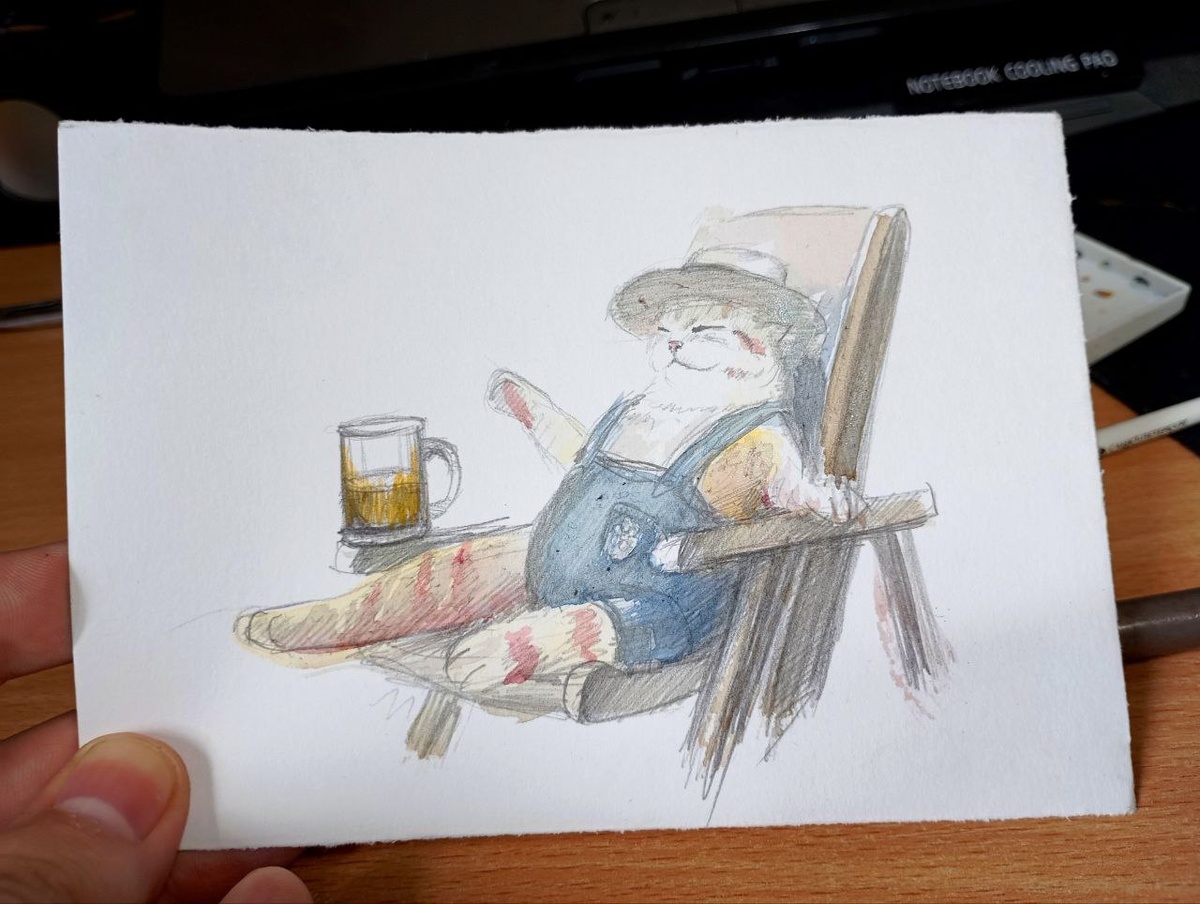 Котик на отдыхе в цвете лета Есть планы на лето? Меня тут спровоцировали на маленькую открытку. Думаю, за пять минут неплохо. Напоминает советский мультфильм про попугая Кешу, где был кот, который на лето съездил вроде бы на Гаити (можете подправить, не помню). Скорей бы лето не по календарю, а в нашей реальности. Ну а пока погода чудит, будем поднимать настроение вот такими котиками!)