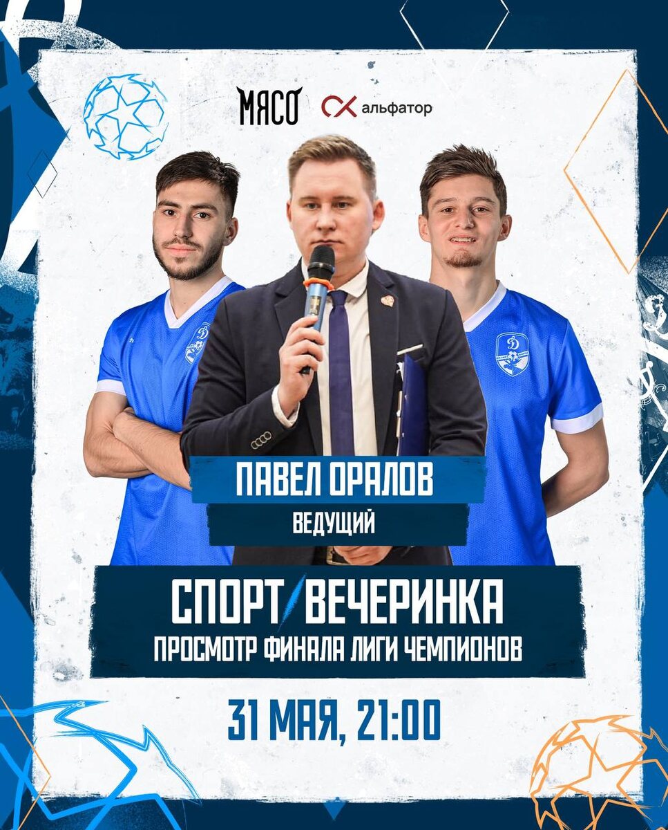 Вечер Лиги Чемпионов 💙 В субботу, 31 мая в ресторане «МЯСО» мы развернём большой экран и устроим уютный футбольный вечер, в рамках которого будет организован просмотр матча «Интер» – «ПСЖ» 🏆 🔹Павел Оралов и футболисты «Динамо» устроят разогрев за час до финала. 🔹Мы разыграем мерч и подарки от спонсоров клуба. 🔹Общение и просмотр главного матча сезона на большом экране. Проведи время с нами! У нас точно будет атмосферно и зрелищно 🔥 Скорее бронируйте столик: 50-81-51 Сбор гостей в 21:00 Лермонтова, 4 @dynamovologda