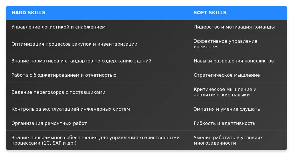 Анализ требований вакансии для начальника хозяйственного отдела