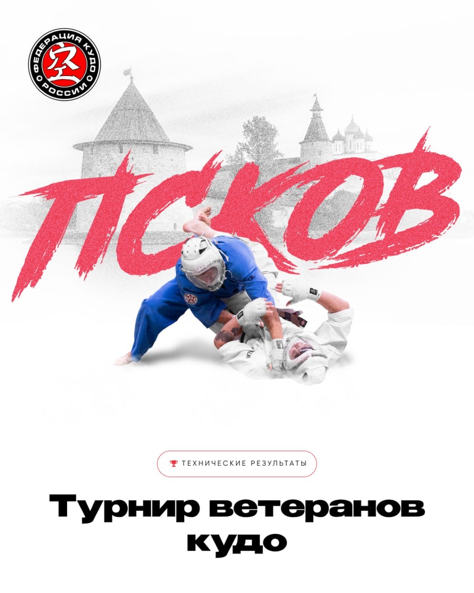 Технические результаты Кубка ветеранов кудо 🏆 В рамках Кубка России 24-25 мая 2025 года прошел Турнир ветеранов кудо (возраст 45+). Коэффициент до 270 единиц 🥇 Сидоренко Денис (Москва) 🥈 Бредихин Артем (Псков) 🥉 Суфляев Николай (Москва) Специальные призы 🔥 За Волю к Победе – Донин Александр (Москва)