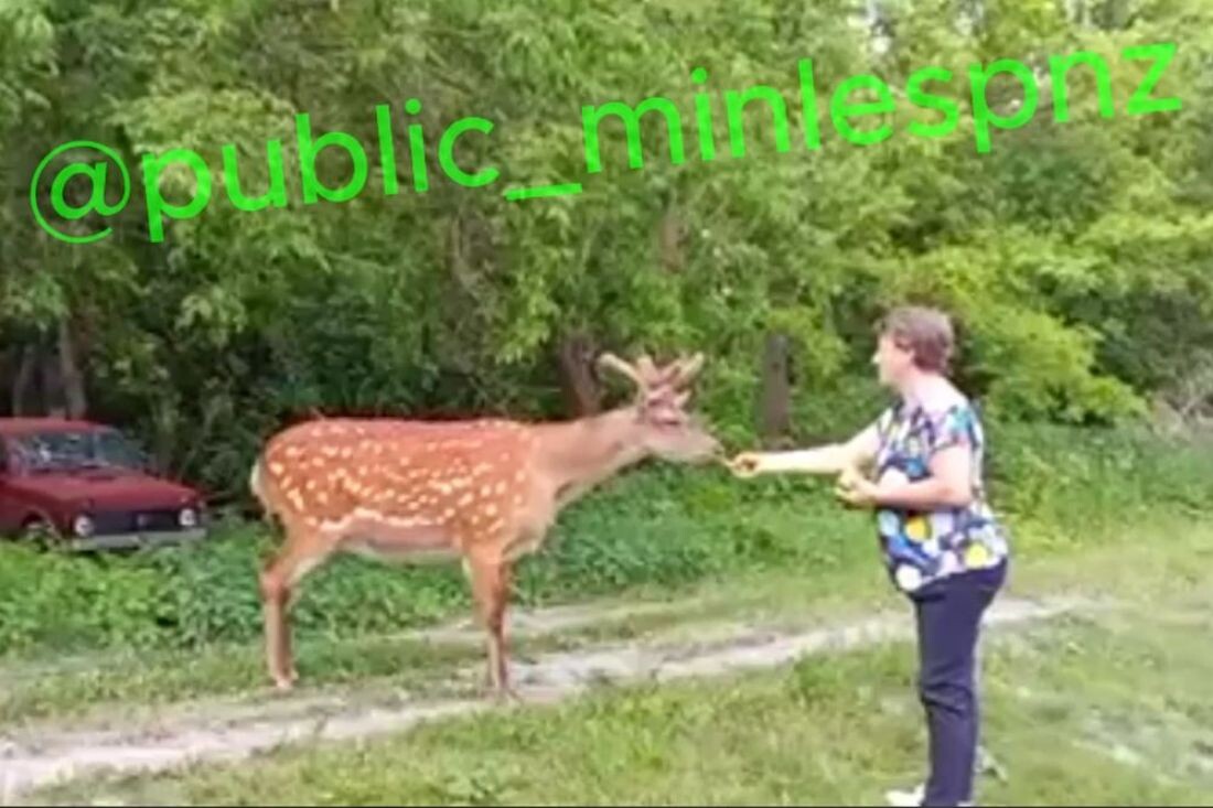 Кормящую дикого оленя жительницу Пензенской области сняли на видео