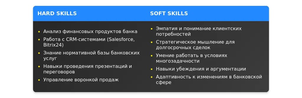После: "Опыт работы с CRM-системами (Salesforce, 1С) и глубокое знание банковских продуктов."