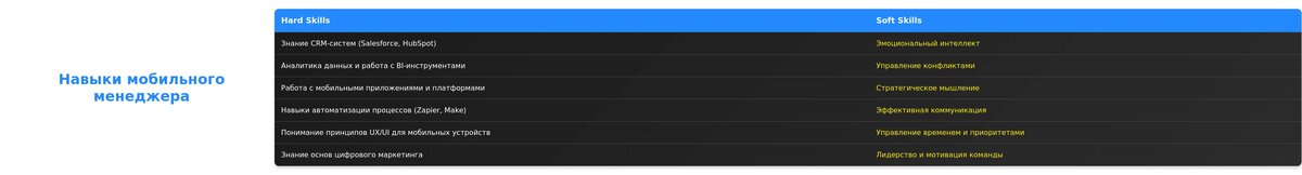 Анализ требований вакансии для профессии "мобильный менеджер"