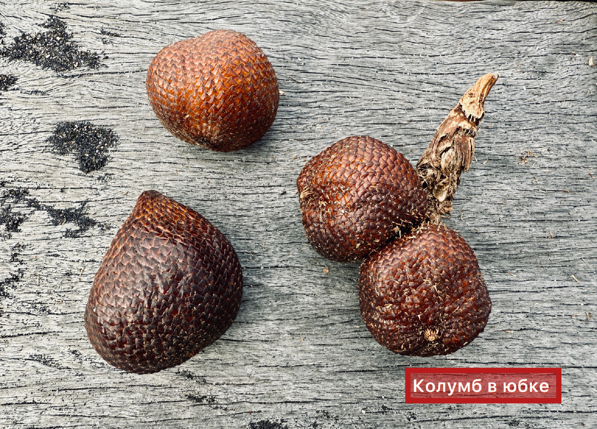 На первый взгляд этот фрукт выглядит так, будто его вырастили в лаборатории. Чешуйчатый, он скорее напоминает яйцо рептилии, чем фрукт, в связи с чем его называют "змеиный фрукт". И, именно чешуйчатая кожица привлекает к нему внимание и вызывает интерес попробовать, что под ней прячется, проверить, "обманчива ли внешность" 😁 Змеиный фрукт является плодом пальмы, родом из влажных джунглей Явы и Суматры (острова Индонезии). Он растёт близко к земле, на пальмах с колючими стволами и ветвями, под тенью других деревьев. Сегодня в Индонезии насчитывается около 30 сортов салака, но только 5-7 из них выращивают в промышленных масштабах. На острове Бали встречаются следующих 3 вида (возможно и больше; нам встретились только эти). Внутри у всех сортов сегменты плотной, хрустящей мякоти, которая имеет разный аромат, вкус и степень терпкости. Продается фрукт в больших корзинах. Растает на острове Бали. Плод хрустящий, с кислинкой. Вкус напоминает несладкий ананас или зелёное яблоко. Часто