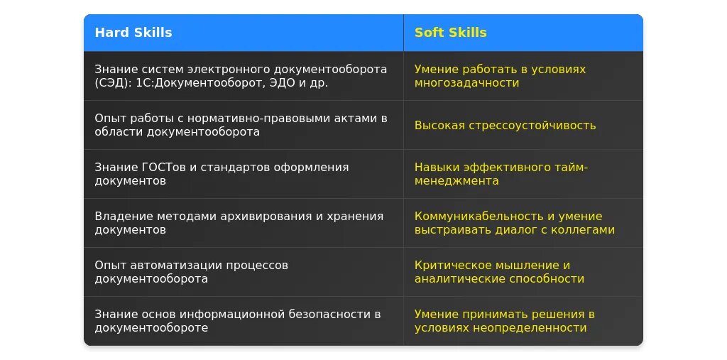 ✅ Аналитическое мышление для оптимизации процессов документооборота.
