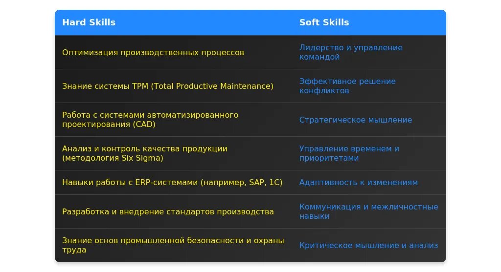 До адаптации: "Знание технологических процессов, управление коллективом, работа с ERP-системами."