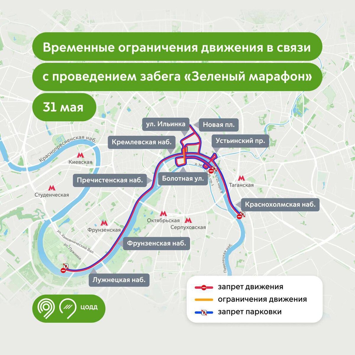 Уважаемые гости Зарядья! 31 мая (суббота) временно изменится схема движения по нескольким улицами в центре Москвы. Это связано с проведением «Зеленого марафона». Детально об ограничениях — по ссылке. Также весь этот день не будет работать Медиацентр Зарядья, а наша подземная парковка будет недоступна с 5:00 до 18:00. Просим учитывать изменения при планировании визита в парк и культурной программы.
