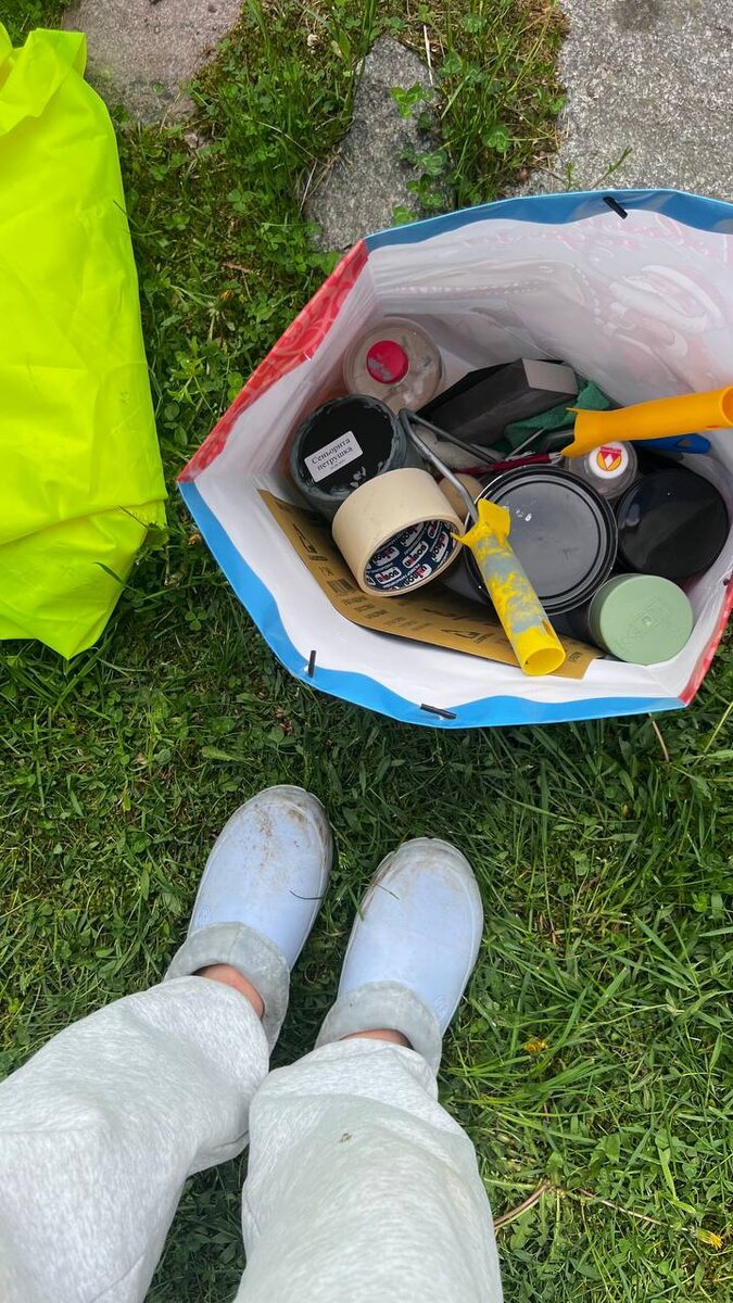 Все, что было у меня из «инструментов»🙈 конечно, надо было их разбирать, менять болты, крепления, но…. У меня лишь краска, скотч, обезжирка и мои ногти 🤣 Довольна как слон. На чердаке еще стоит советское трюмо. Надеюсь, что летом до него дойдут руки.