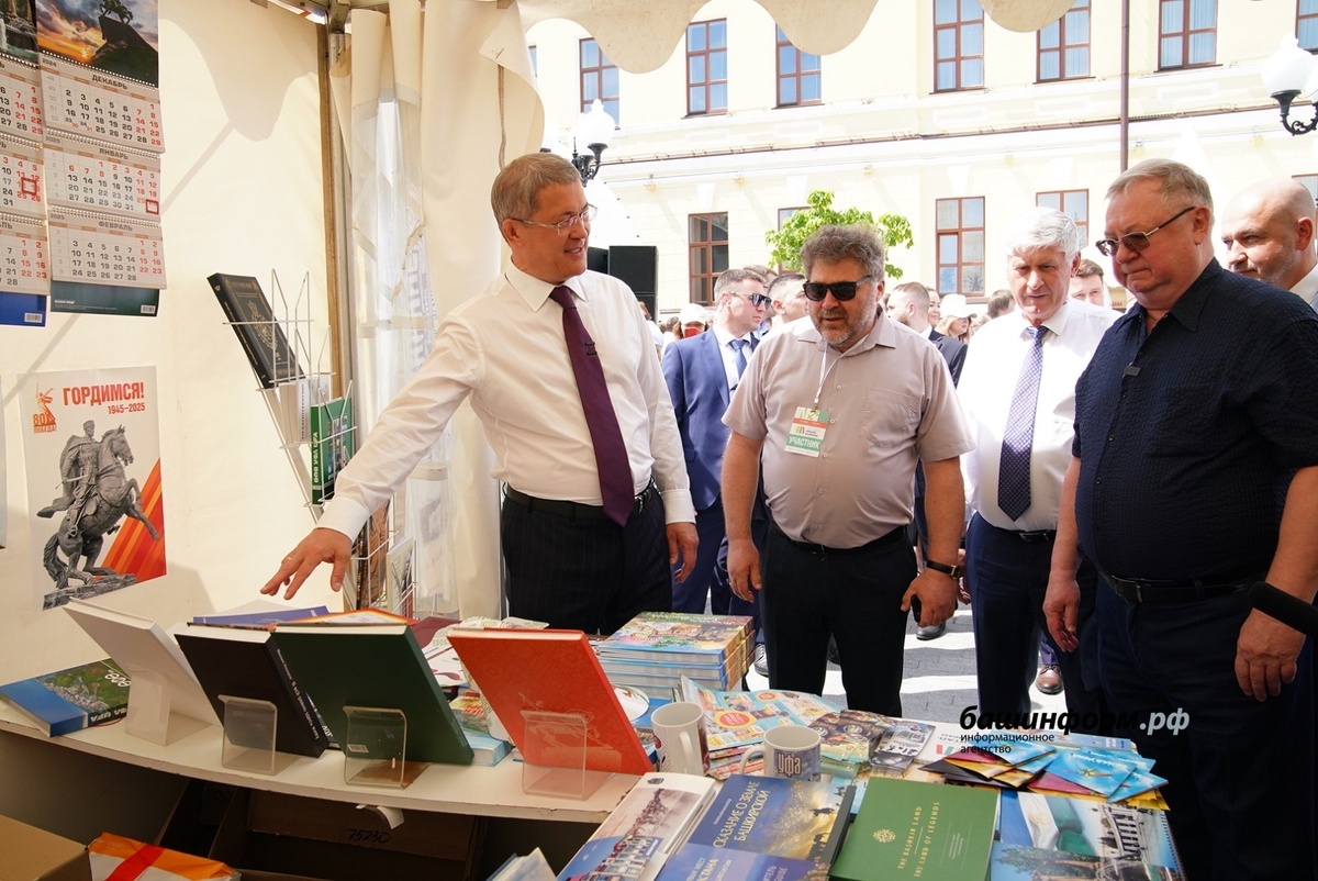 «Правильная книга — это источник нравственности и духовных сил», — сказал сегодня на Международной книжной ярмарке «Китап-Байрам» в Уфе Глава Башкортостана Радий Хабиров. Праздник книги стартовал сегодня и продлится 3 дня. До начала церемонии открытия Радий Хабиров, президент Российского книжного союза Сергей Степашин и другие почетные гости обошли площадку книжной ярмарки и пообщались с участниками. Президент Ассоциации книгоиздателей «АСКИ» Константин Чеченев отметил, что благодаря большому вниманию руководства Башкортостана к развитию книгоиздания Башкирское издательство «Китап» находится на ведущих позициях в стране по количеству и тиражу изданий. «Это выставка федерального масштаба. Сюда приехало более 100 издательств и это говорит о многом. Радует, что много национальных издательств из разных регионов. Башкирия подтверждает свой статус самого читающего региона», – отметил Константин Чеченев. Он также подарил Главе республики книгу «Летопись Победы. 1418 дней и ночей» — юбилейное