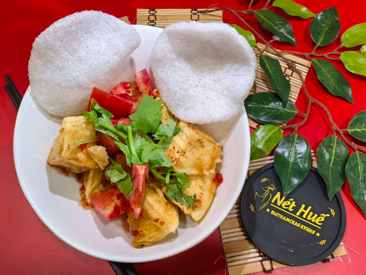 Салат из баклажан – великолепное блюдо из вьетнамского кафе «Net Hue». «Хэдлайнер» этого рецепта – баклажан, обжаренный в невероятно хрустящей и безумно вкусной кисло-сладкой панировке. Помидоры, кинза и кунжут идеально сочетаются с «синенькими». Венчает этот кулинарный шедевр – идеально сбалансированный между сладостью, кислотой и остротой пикантный соус. Великолепное, легкое и невероятно вкусное блюдо, которое подойдет даже веганам. Где: ТЦ «Ханой-Москва», 2 этаж, кафе «Net Hue» *Информационный пост, не является рекламой