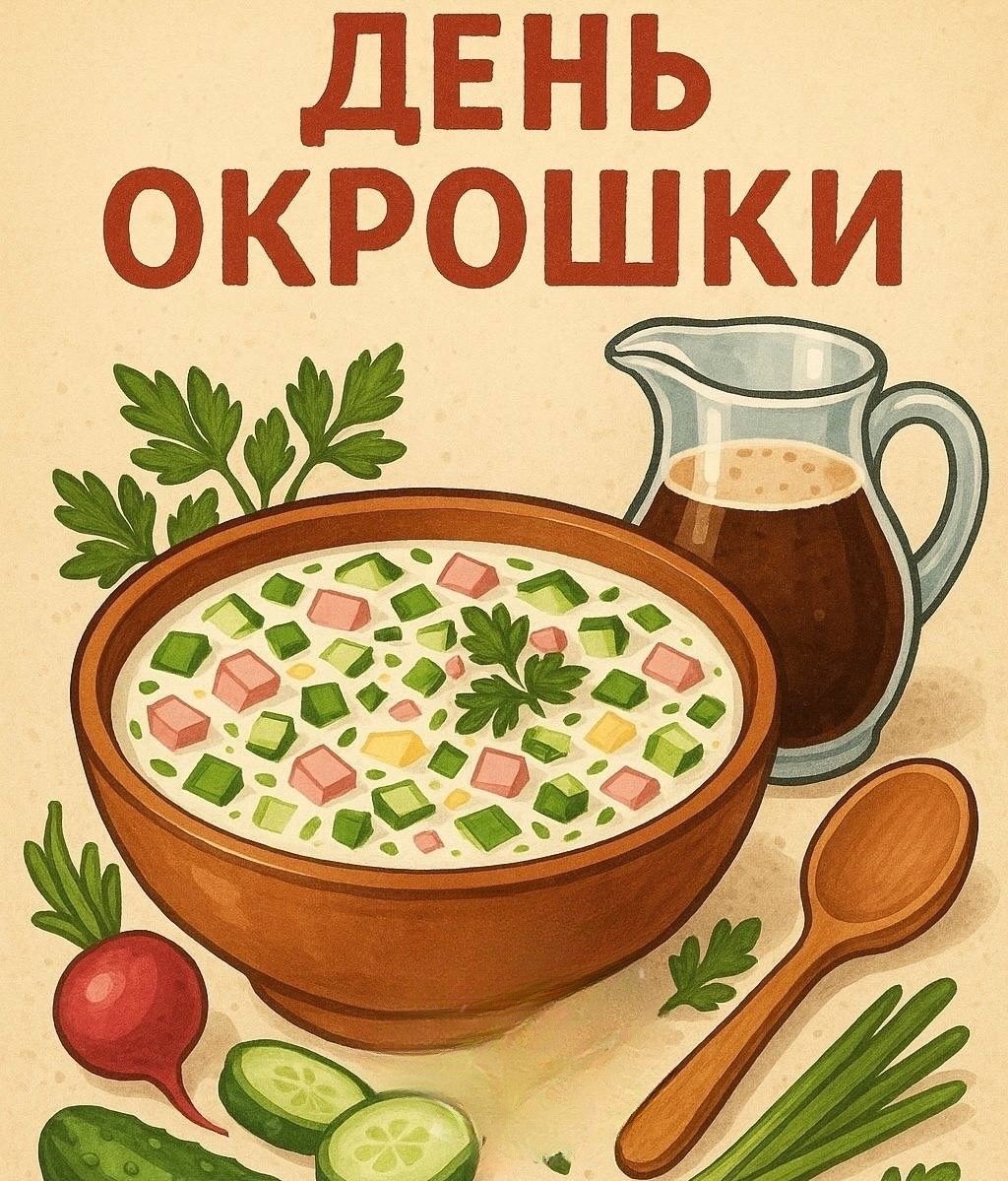 🥗 День окрошки отмечается сегодня Когда появился неофициальный праздник для любителей окрошки, неизвестно. А вот история нашего любимого летнего блюда уходит корнями в глубокую древность. Окрошку упоминали аж в русских летописях. 📜 Бытует мнение, что крестьяне готовили основу из остатков вчерашней еды. Позже к ним они стали добавлять жидкость. Так и возникло это блюдо. 🥗 😏 Вечный спор: с чем есть окрошку? ❤️🔥 — Квас. ❤️— Кефир/айран/кумыс. 🙏 — Газировка. 😍 — Кефир с газировкой 😏— Вода. 🥰 — Без всего.