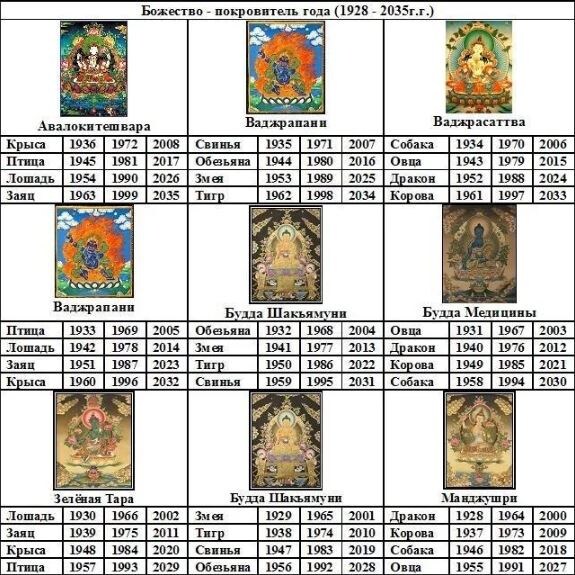 Вы можете определить своего буддийского покровителя по следующей таблице. Найдите в ней свой год рождения.