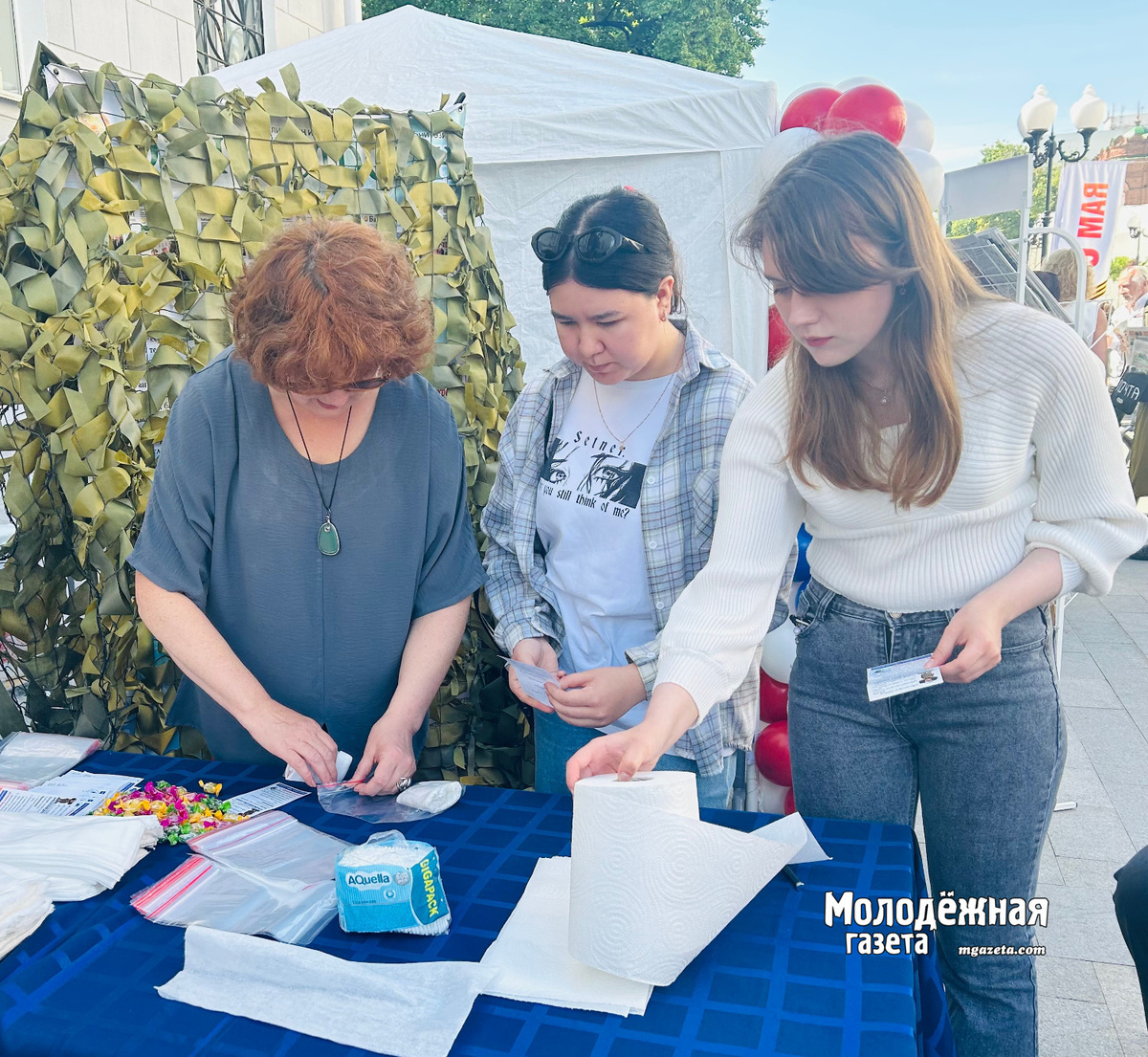 Её организовали на стартовавшей сегодня на Советской площади Уфы книжной ярмарке «Китап-Байрам» Книжная ярмарка «Китап-Байрам», организованная по инициативе главы Республики Башкортостан Радия Хабирова, проходит в Уфе в третий раз. Как сообщает «Молодёжная газета», мероприятие продлится три дня и включает в себя не только продажу новых изданий, но и проведение лекций, встреч с известными литераторами, а также презентации творчества молодых авторов. В рамках ярмарки на площадке ИД «Республика Башкортостан» был организован мастер-класс по изготовлению «сухого армейского душа» для бойцов СВО. В нём могли принять участие все желающие. Руководитель волонтёрской группы «Мы за своих Уфа» Ольга Вязовая сообщила, что их группа оказывает помощь участникам специальной военной операции уже более двух лет и занимается по различным направлениям. Сегодня, совместно с коллективом газеты «Республика Башкортостан» волонтёры провели мастер-класс по изготовлению «сухого армейского душа». Она отметила,
