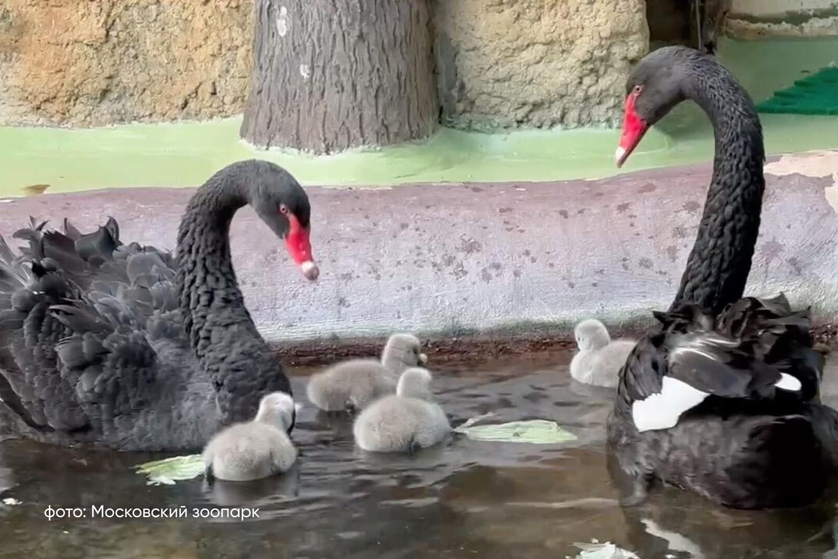 В Московском зоопарке родился птенец черношейного лебедя — редкого вида, занесенного в Международную Красную книгу. 🦢 Птенец пока слишком мал, чтобы определить пол. Его круглосуточно опекают родители и по очереди носят на спине. Летать малыш начнет только в три месяца. 🦢 Чтобы не тревожить пернатых родителей и их птенца, часть вольера временно закрыта для посетителей — эти лебеди крайне восприимчивы к постороннему вмешательству.