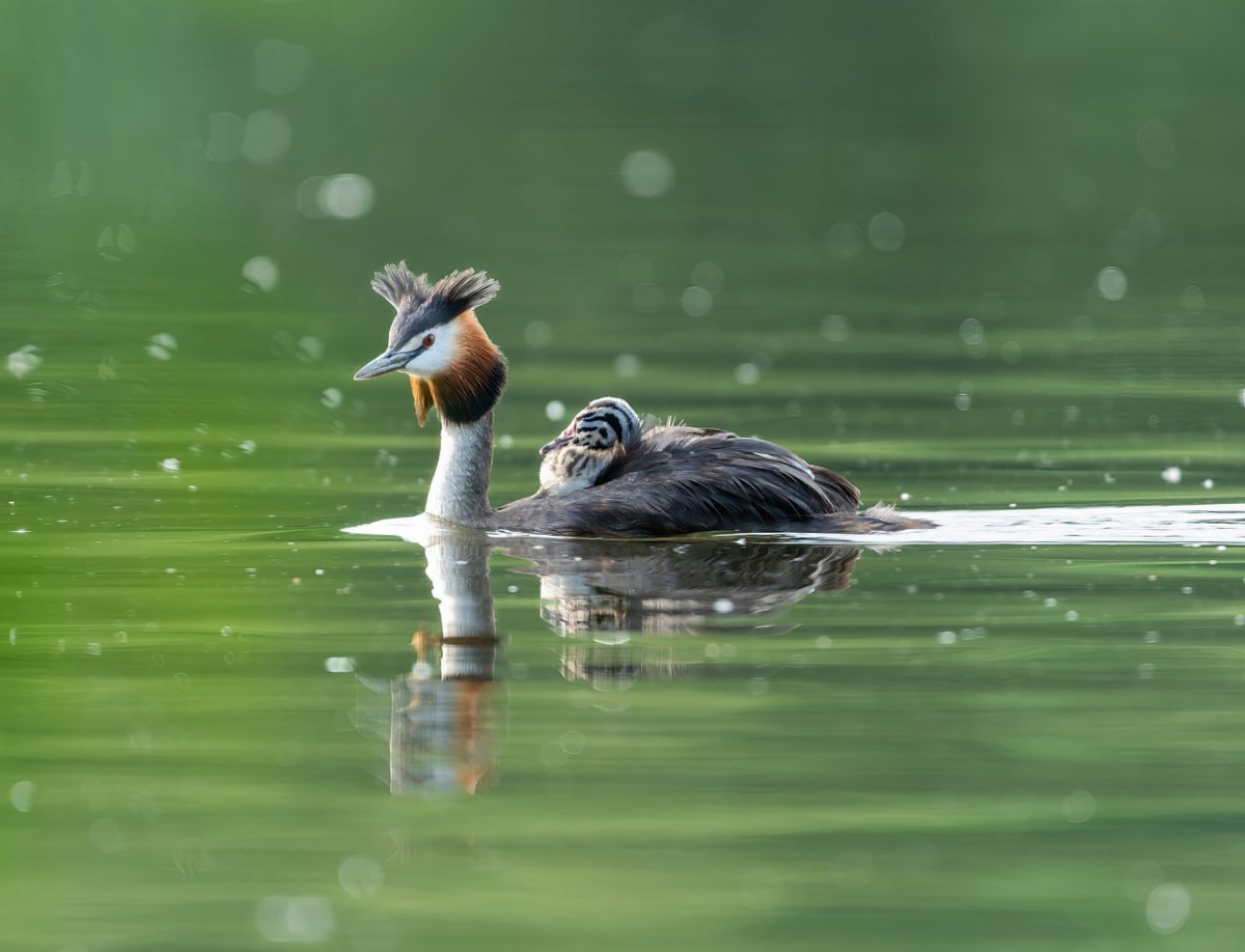 Классический портрет мамы чомги и её полосатое дите. В этот раз более менее повезло со светом и ветром #Царицыно #Чомга #Птенец #GreatCrestedGrebe #matinggames #tsaritsyno #Podicepscristatus #Chick