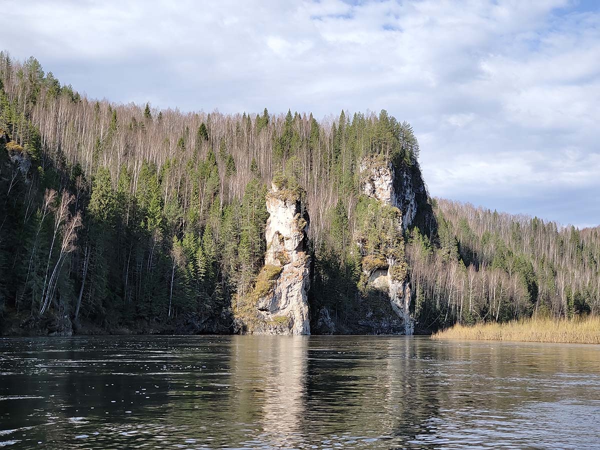 Дождь льет, и я даже не могу снять камень Кирпичный, который, пожалуй, красивее всех на реке, напоминает настоящую крепость. К счастью, коллеги по походу потом скинули мне фото, большое спасибо!)