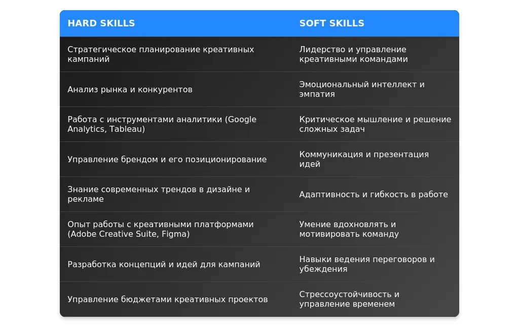 Работа с ключевыми словами: используйте термины из описания вакансии, такие как "креативное лидерство", "стратегическое мышление", "управление проектами".