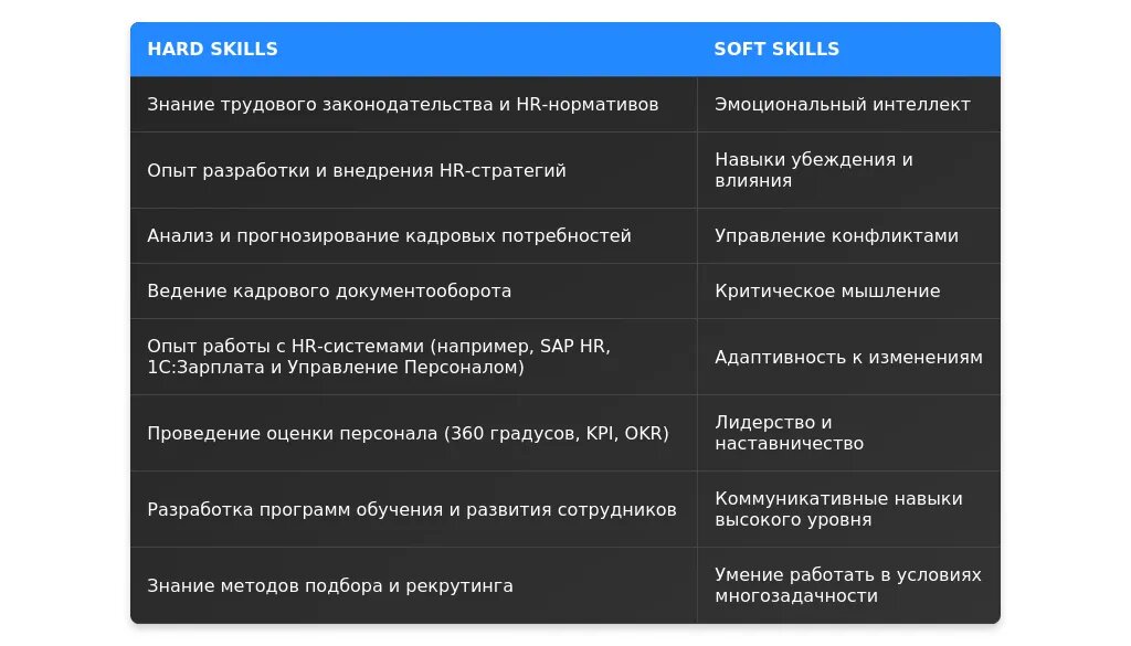 - Неактуальные навыки (например, "работа с устаревшими HR-системами").