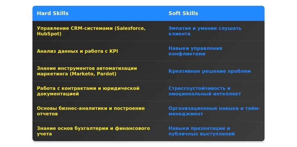 После адаптации: "Работа с возражениями клиентов, внедрение CRM-систем, ведение переговоров, аналитика продаж."