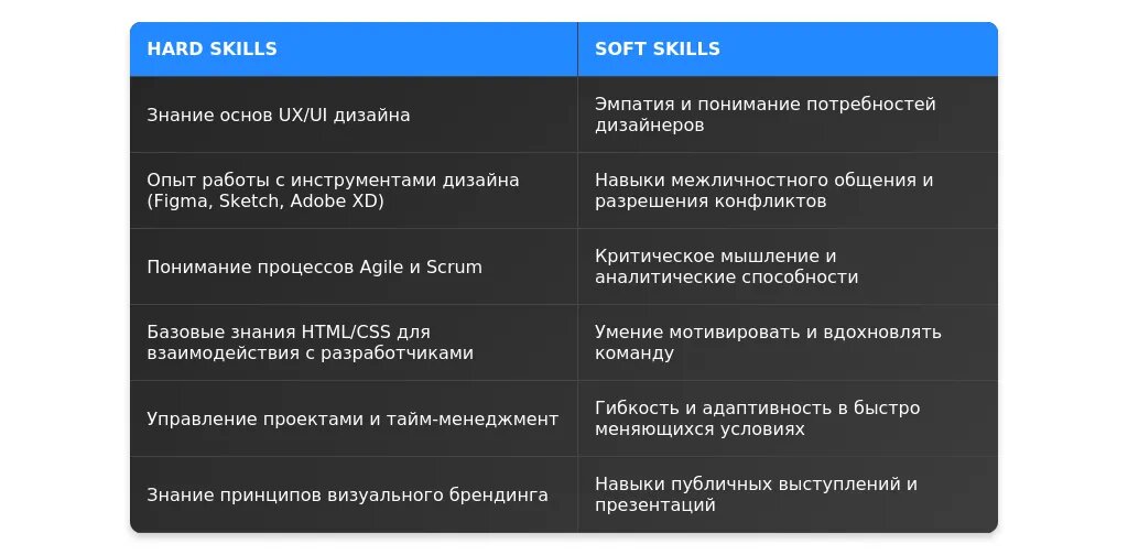 После адаптации: "Управление командой дизайнеров, Figma, Adobe XD, Agile-методологии, кросс-функциональная коммуникация".