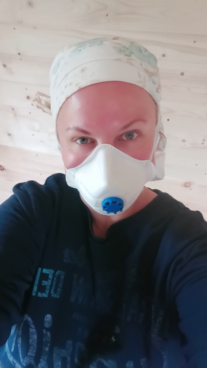В этот раз я была умнее, а может во всем виноват чудовищный запах краски в доме, но теперь я не стала пренебрегать маской. К тому же из-за запаха краски, который я продолжала чувствовать не смотря на маску, я разделила покраску дома на 2 дня.