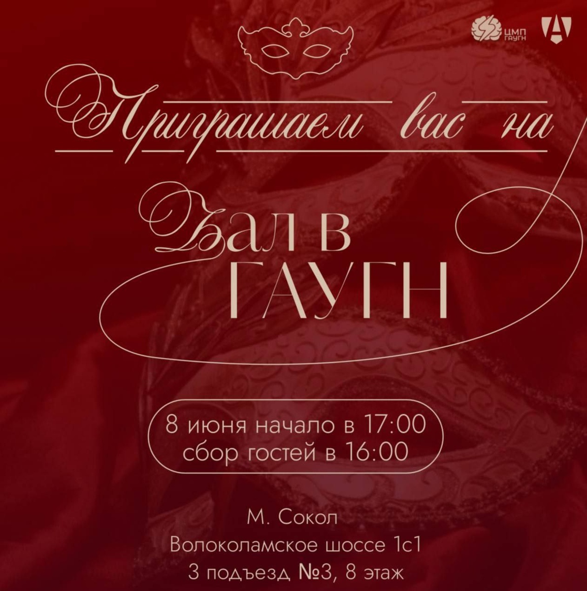 Бал ГАУГН распахнет свои двери 8 июня! 💫 🩰 Готовьте свои бальные платья и фраки! ГАУГН приглашает всех желающих на долгожданный Бал, который состоится уже совсем скоро! Сегодня мы с радостью объявляем дату самого ожидаемого события этого года - Бал ГАУГН! Погрузитесь в атмосферу элегантности и насладитесь прекрасной музыкой. 📆 Дата и время: 8 июня с 17:00 до 20:00. 📍 Место проведения: Волоколамское шоссе, 1с1. Приглашаем студентов, преподавателей и всех, кто мечтает окунуться в мир бальной культуры! ✨ Обязательная ссылка для регистрации. Ждем вас на Балу ГАУГН! #Бал_ГАУГН #простРАНство_ГАУГН #gaugn_event