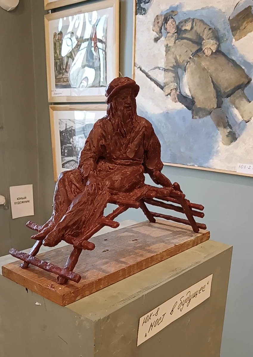 Рассмотрим два симпатичных произведения искусства. «Мост в будущее» - мудрый старец, уютно устроившись на самодельном деревянном мостике, размышляет о том, что день грядущий нам готовит. «Мост-лента» - крепкие мужчины изо всех сил держат канаты, чтобы дамы могли перейти через пропасть. В серии коротких репортажей #выставка_мост наш эксперт, известный инженер-мостовик Станислав Александрович Шульман рассказывает о самых интересных работах студентов Санкт-Петербургской академии художеств имени Репина, посвященных мостам. Выставка работала с 29 апреля по 17 мая 2025 года. Подписывайтесь на канал, у нас интересно! И не забудьте заглянуть на сайт Мировые Мосты ⇢