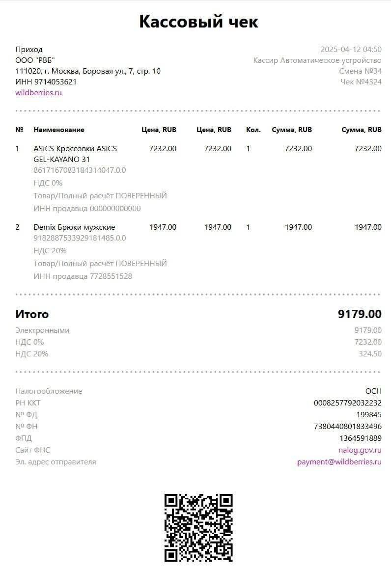 WB, ASICS и 000000000000: кто продал — неизвестно, но кроссовки пришли. Дмитрий Алексеев (совладелец DNS) провёл эксперимент: Купил ASICS GEL-KAYANO 31 на WB в 4 раза дешевле, чем в Спортмастере. Без «Честного знака». Без нормального чека. С продавцом-невидимкой (ИНН 000000000000). В чеке указано: — товар проверенный, — продавец не установлен, — WB вроде бы ни при чём. Гипотезы: 1. Реплика. 2. Серая схема ввоза (трансгран, НДС не платили). 3. Арбитраж налогов и маркировки. 4. Редкая смесь всего выше + удача. 5. Магия. Но факт в другом: Система “Честный знак”, по идее, должна была защитить от этого. А по факту — у самого крупного продавца одежды в РФ можно купить товар без маркировки и чека на реального продавца. Вопрос: Это сбой системы или её часть? И можно ли тогда удивляться, что честным продавцам всё сложнее? Marketplace_biz - отдай свой буст каналу