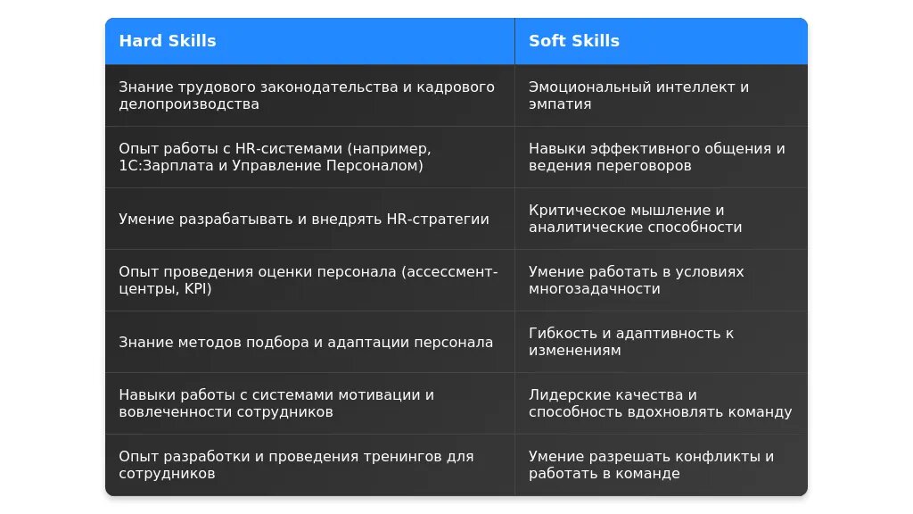 Обязательная информация: укажите ключевые навыки, опыт (если есть), профессиональные достижения, сильные стороны и личные качества, которые важны для работы с персоналом.