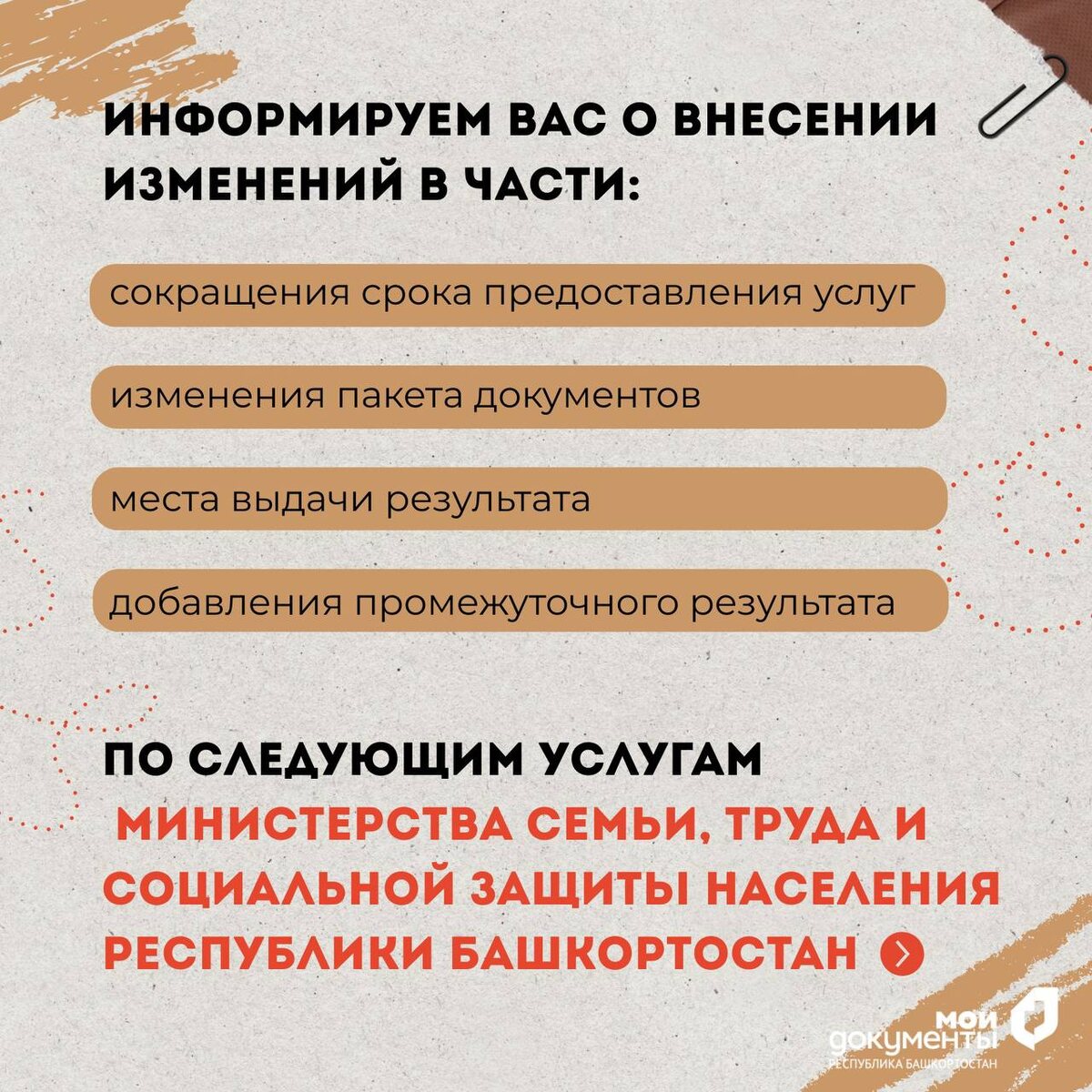 Изменения по услугам Министерства семьи, труда и социальной защиты населения Республики Башкортостан #МФЦБашкортостана