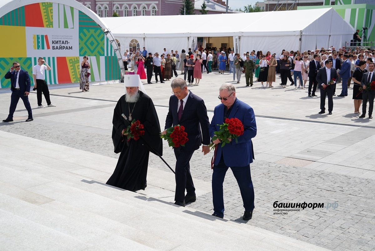 30 мая в Уфе Глава Башкортостана Радий Хабиров вместе с почётными гостями III Международной книжной ярмарки «Китап-Байрам» – президентом Российского книжного союза Сергеем Степашиным, митрополитом Калужским и Боровским Климентом возложили цветы к памятнику Героя России, генерал-майора Минигали Шаймуратова.